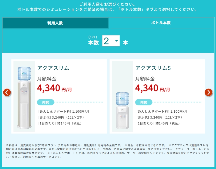 | アクアスリムS | 1,100円 | 1,100円 |
